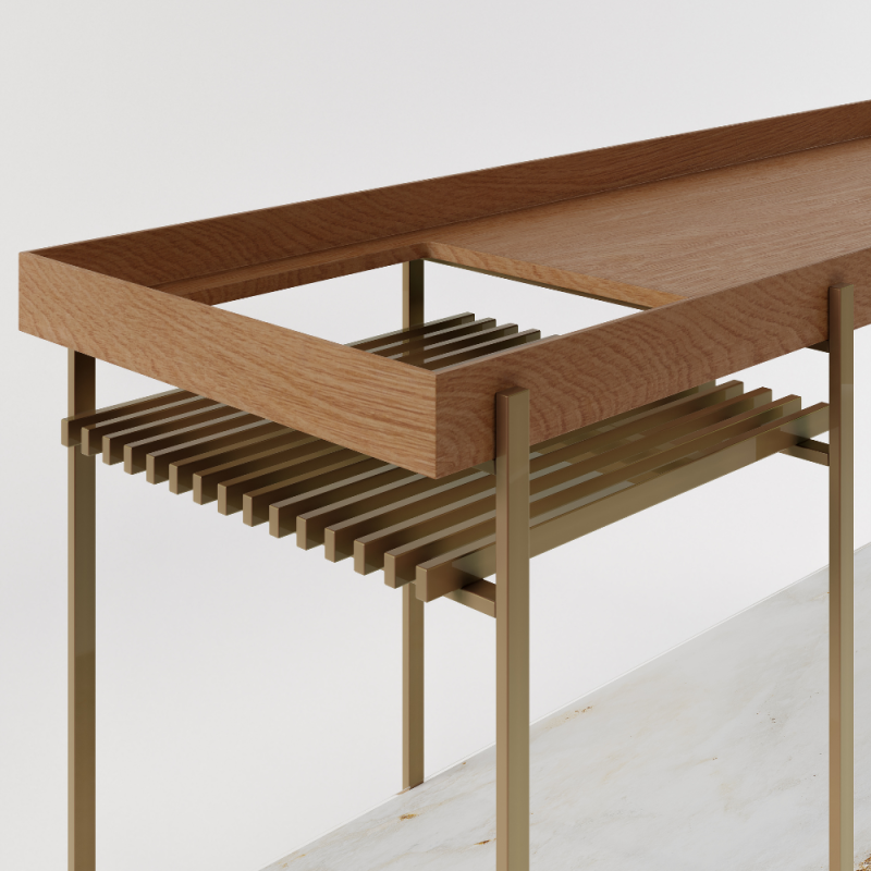 Aparador Jabô - Macrosul Móveis. Uma peça de mobiliário verdadeiramente minimalista que combina forma e função de maneira elegante e sofisticada. Criado pela Azo Collab, o Aparador Jabô é uma homenagem à cidade de Jaboatão dos Guararapes. A peça nos mostra uma representação artística da cidade que renovou sua criação. Este aparador é uma obra da simplicidade, destacando-se pela sua estética limpa e contemporânea.Evidencia visualmente a união do metal e louro freijó que resulta em uma combinação de materiais que ressalta a beleza natural da madeira.